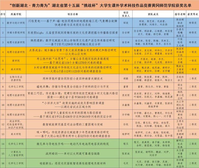 【黄师荣誉】我校在湖北省第十五届“挑战杯”大学生课外学术科技作品竞赛中斩获佳绩